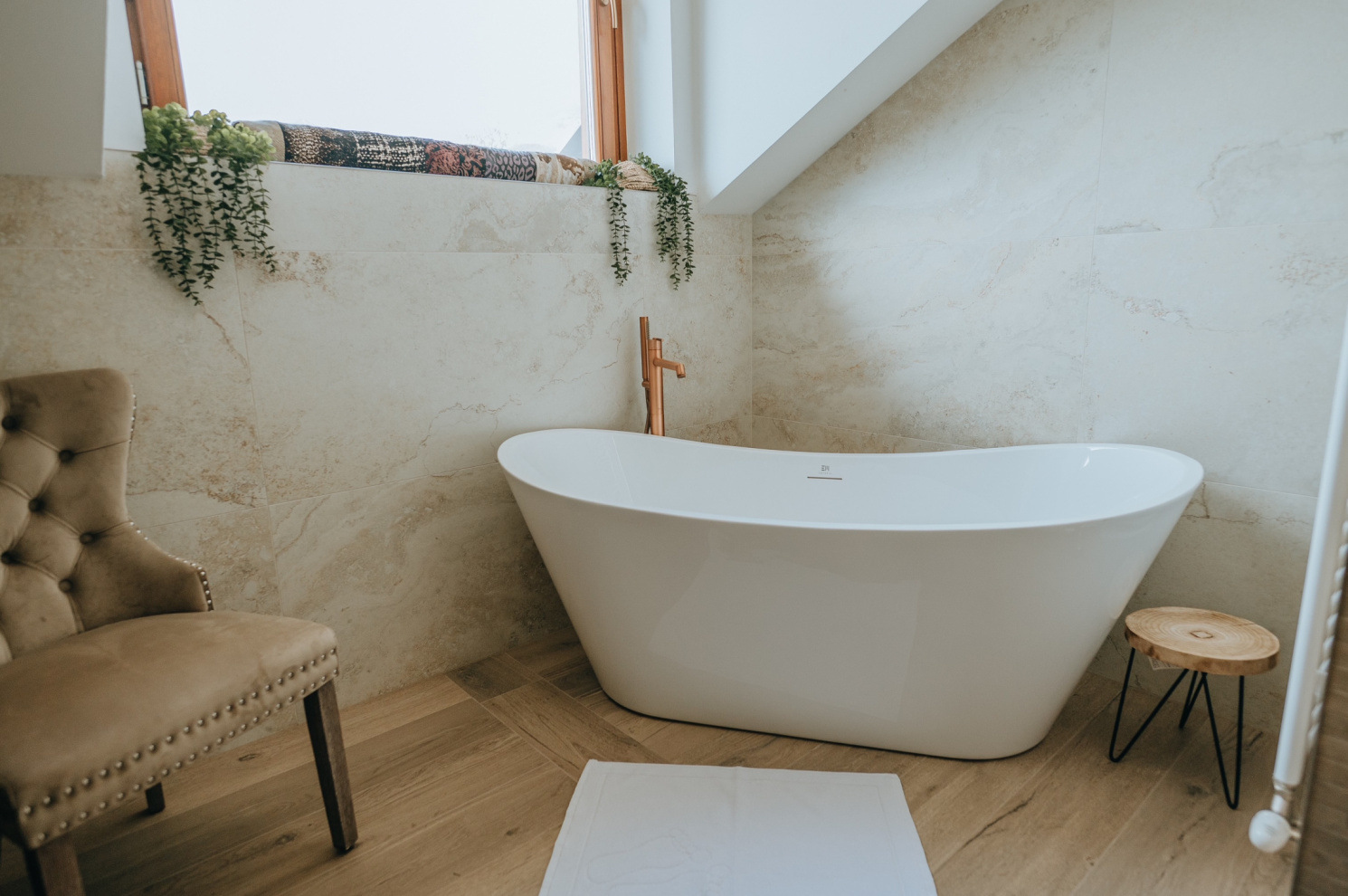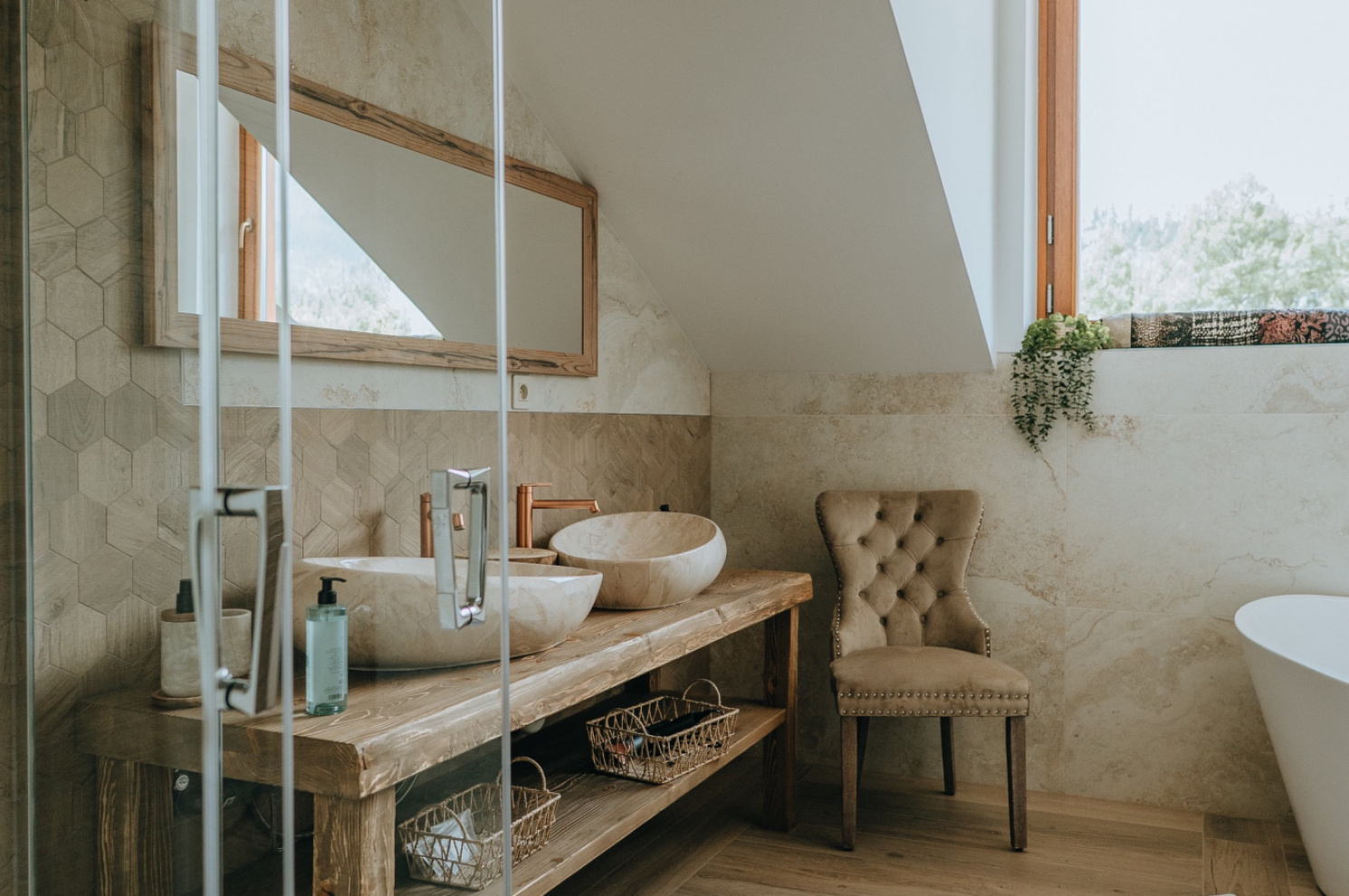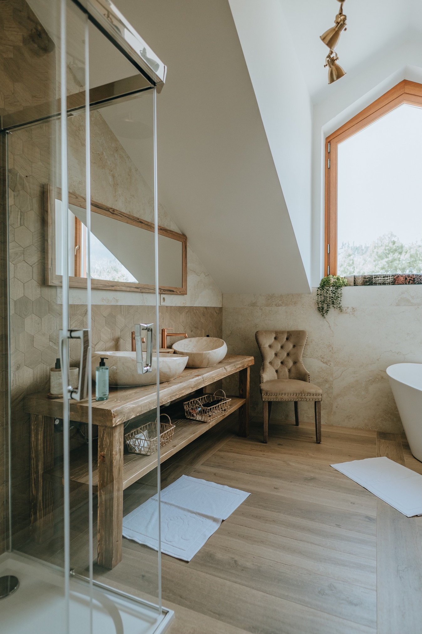 - Luxusnou kúpeľňou so sprchovacím kútom a vaňou, oddelenou toaletou