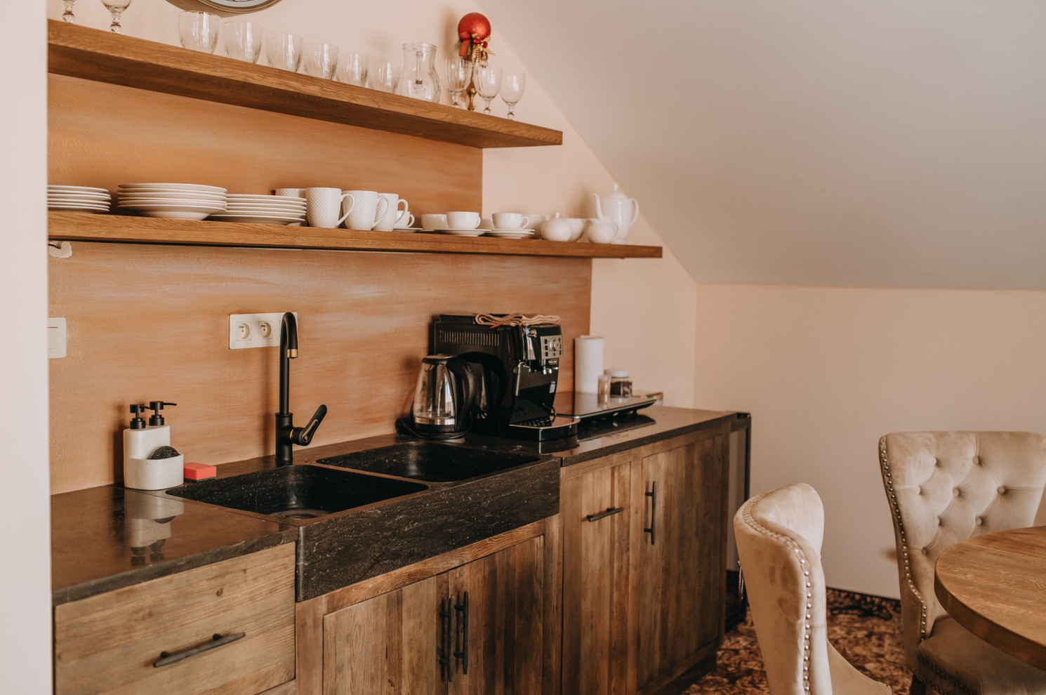 - Rýchlovarnou kanvicou a bezplatným čajom pre chvíle pohody a relaxu