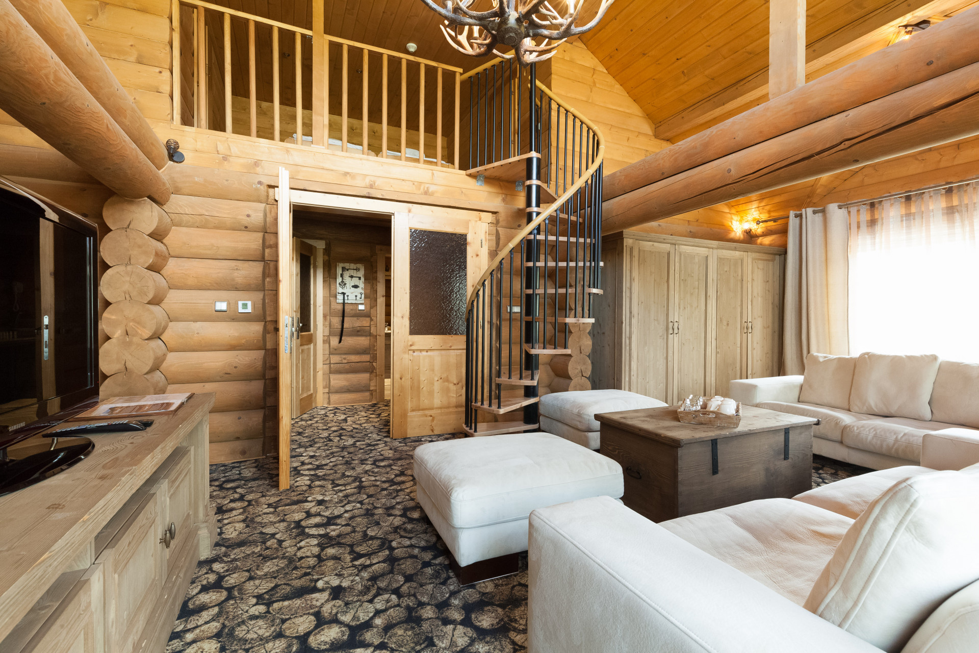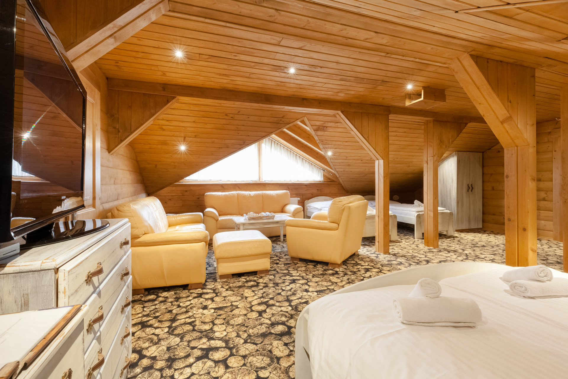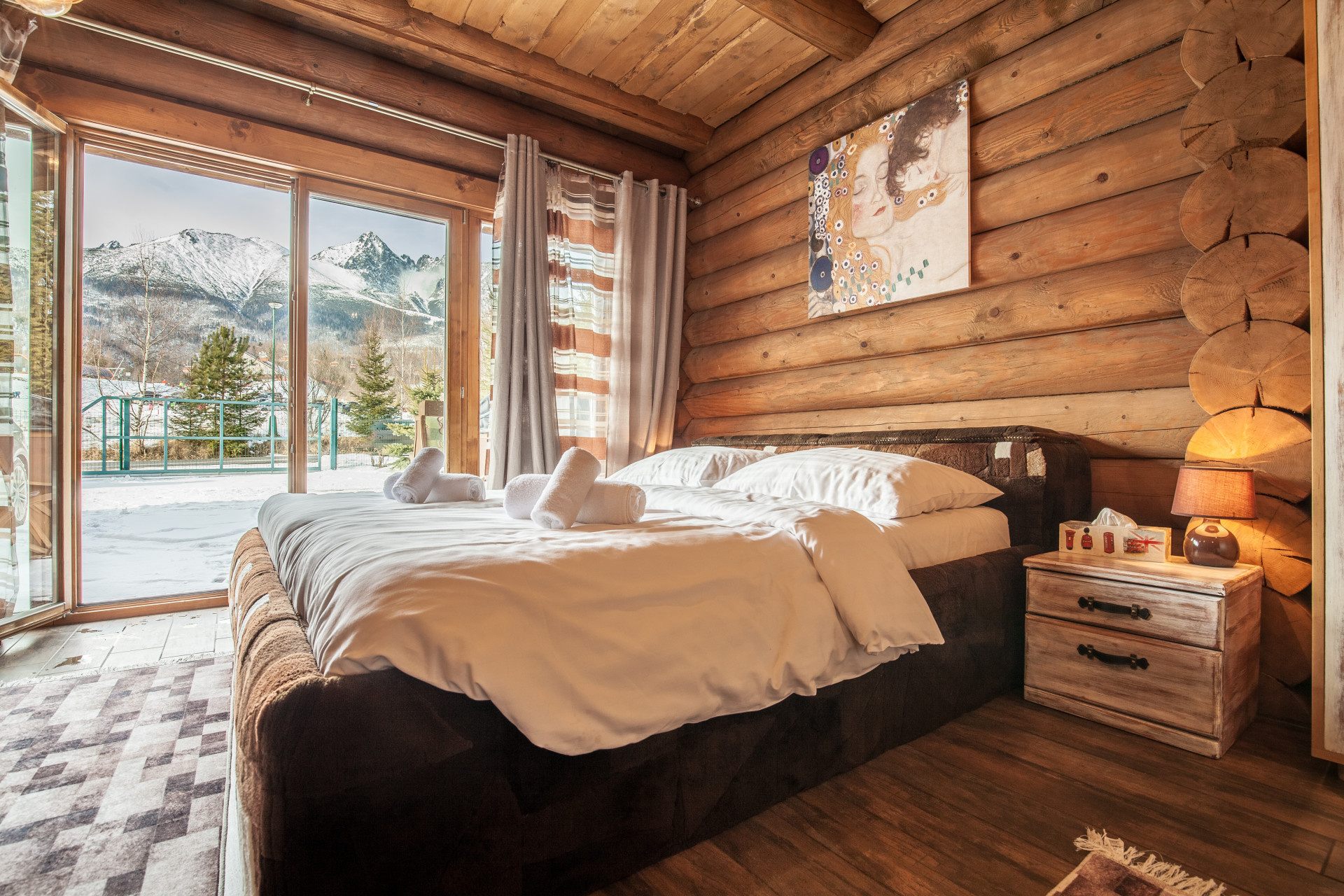 útulné izby a apartmány, kde dominuje drevo a prírodné materiály,